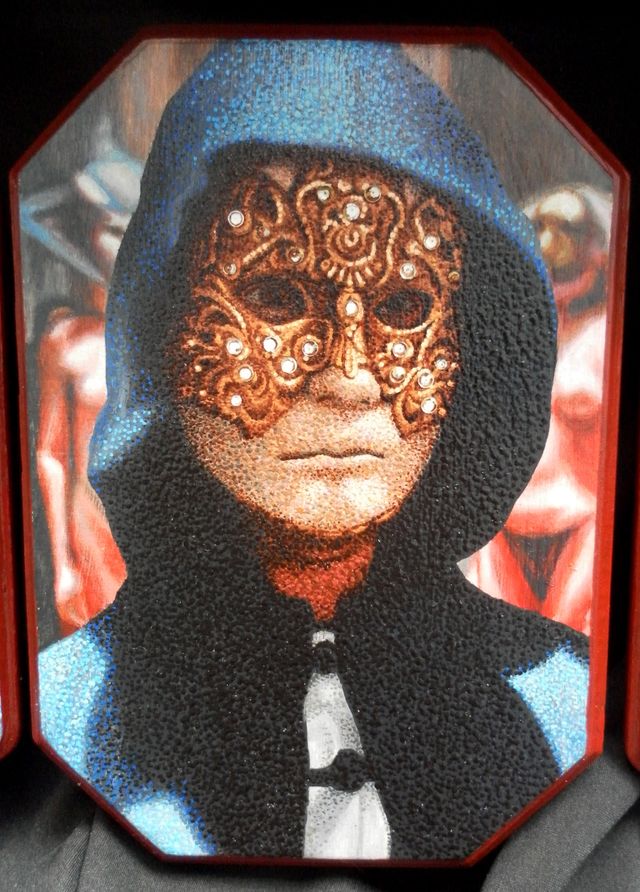 Each panel 5x7"(x3) acrylic on wood with jewel embellishment